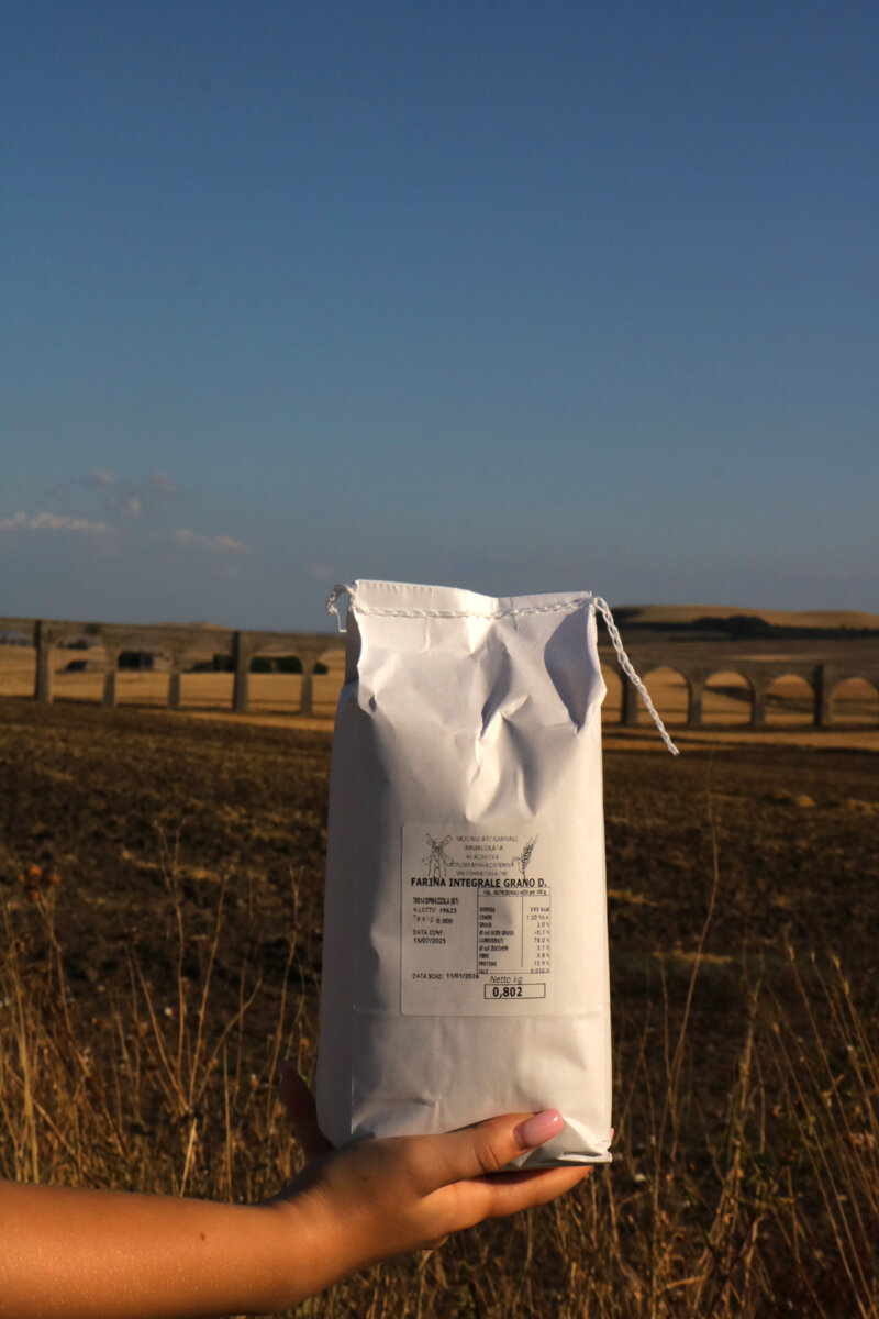 La nostra farina integrale di grano duro nasce da una selezione attenta di grani coltivati in Puglia e macinati nel rispetto della tradizione.